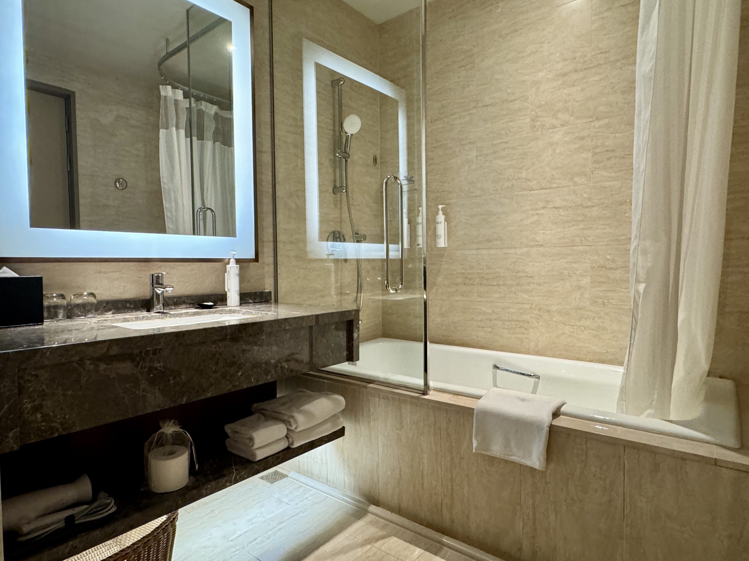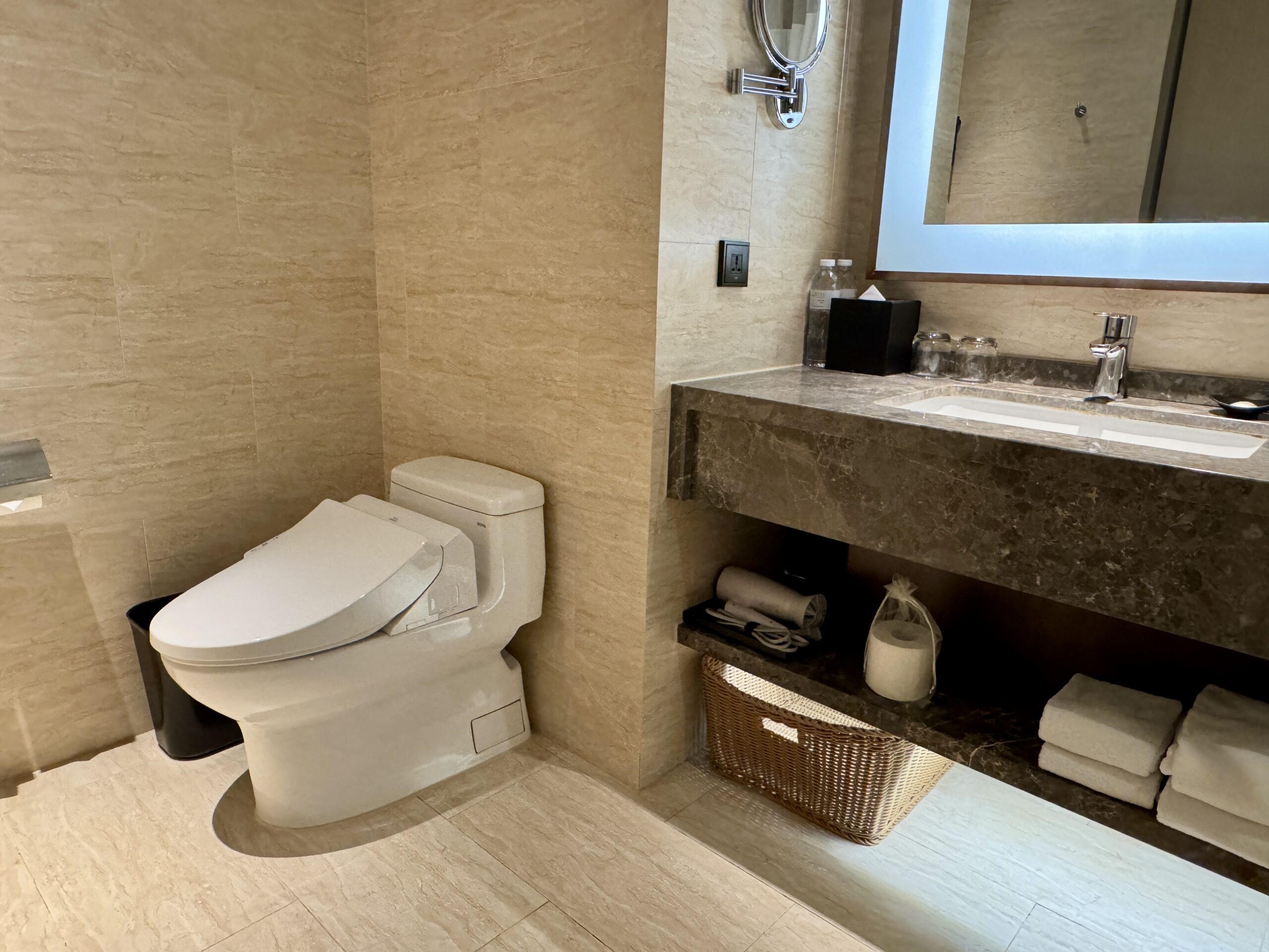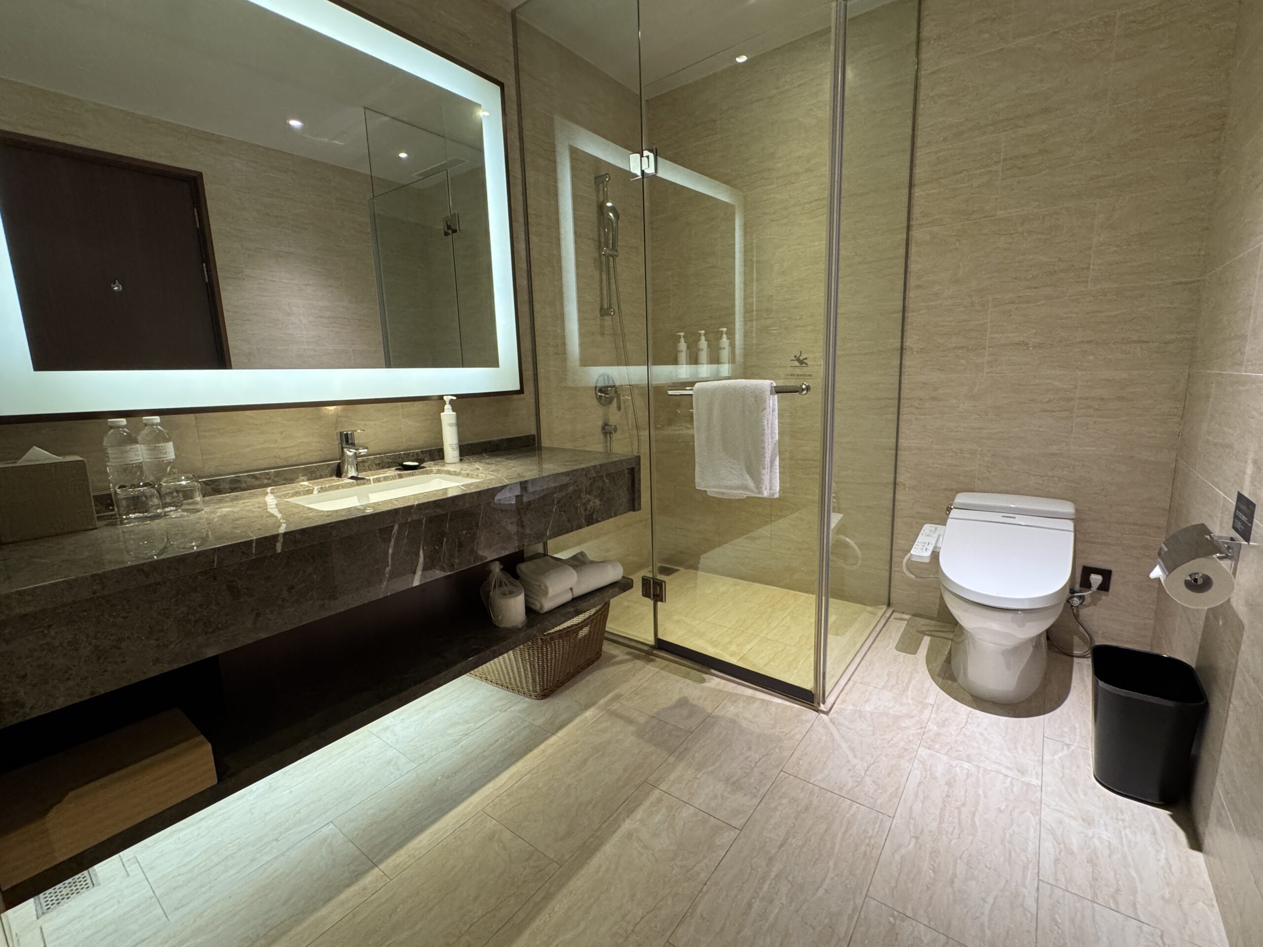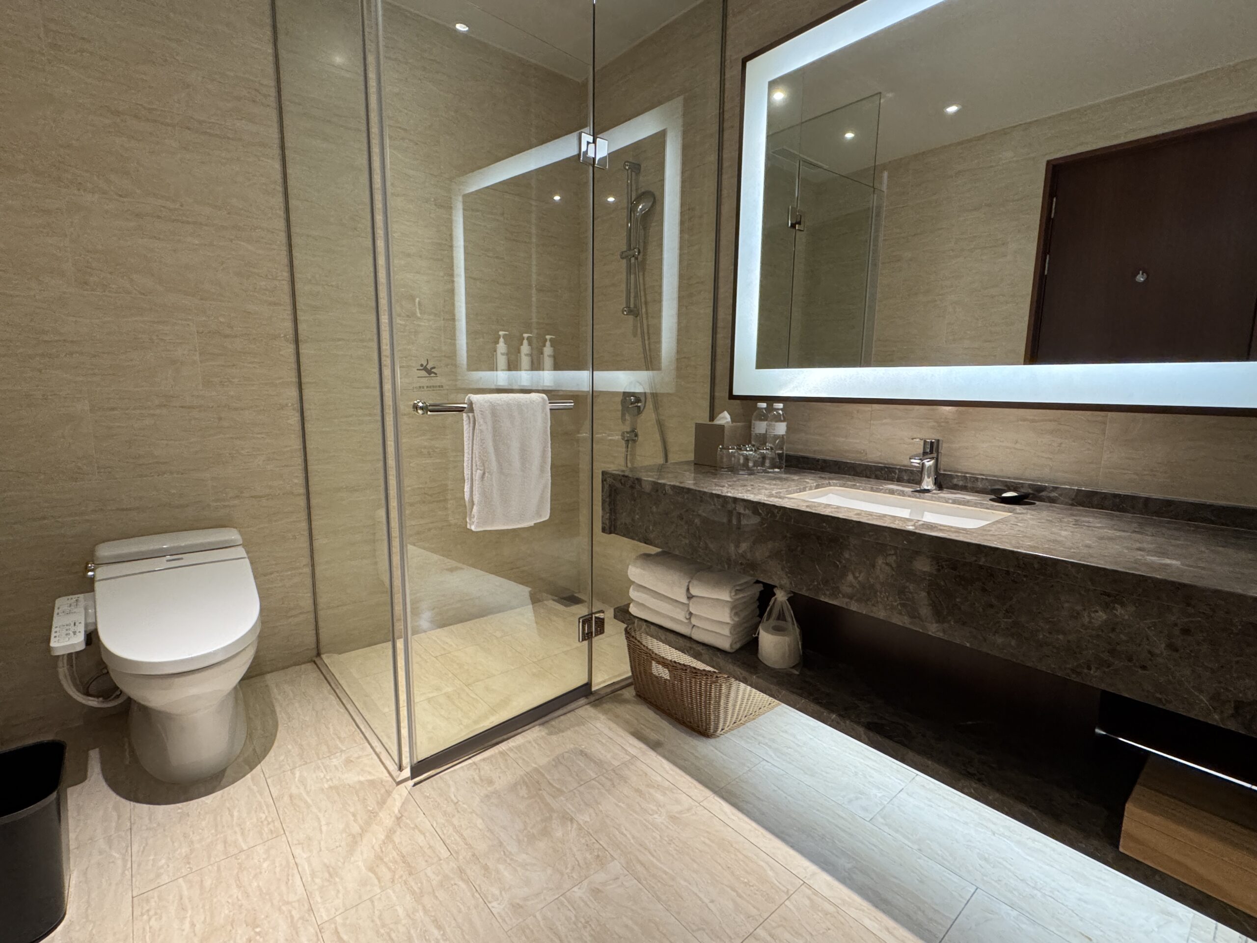客室タイプによっては、バスタブとシャワーが分かれた設計となっており、シャワーだけでなく湯船に浸かれる点も、日本からの旅行者にとって嬉しいポイントです。また、トイレにはウォシュレットが備えられており、日本人にも馴染みやすい仕様となっています。