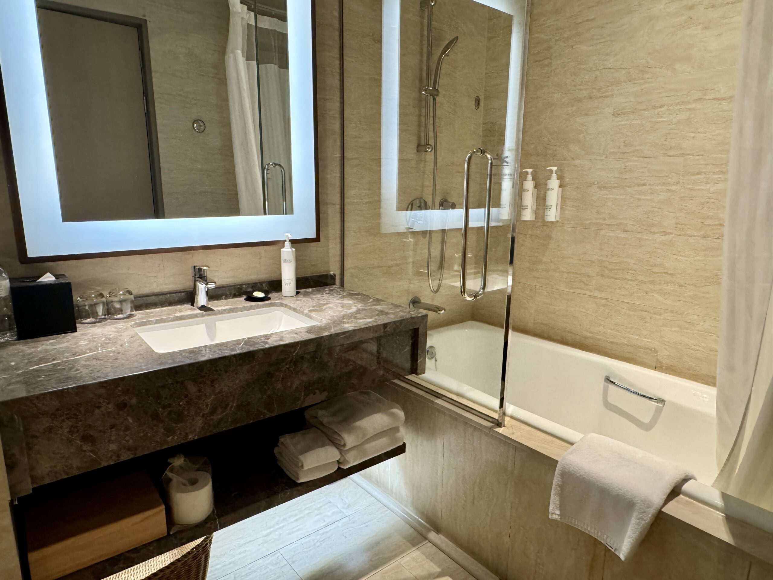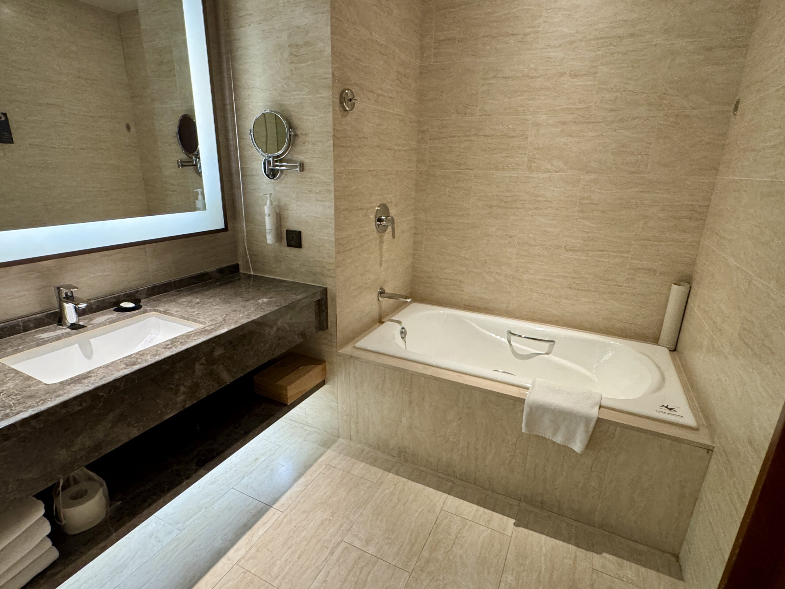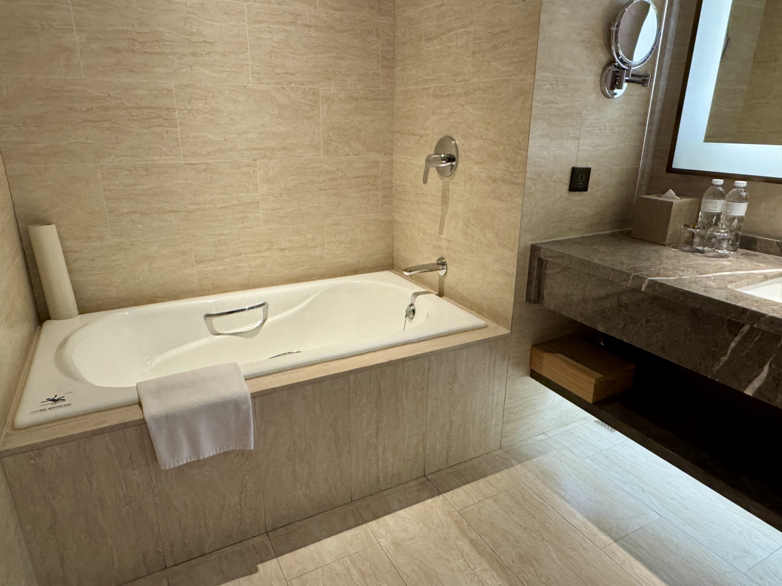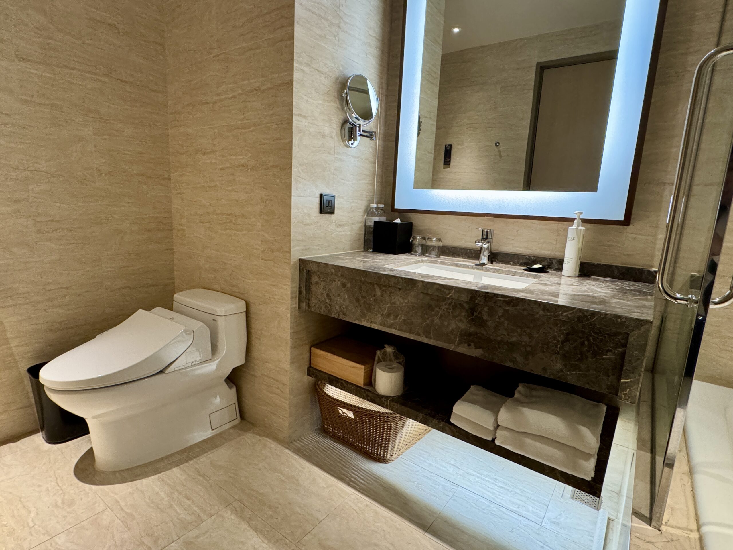 客室タイプによっては、バスタブとシャワーが分かれた設計となっており、シャワーだけでなく湯船に浸かれる点も、日本からの旅行者にとって嬉しいポイントです。また、トイレにはウォシュレットが備えられており、日本人にも馴染みやすい仕様となっています。