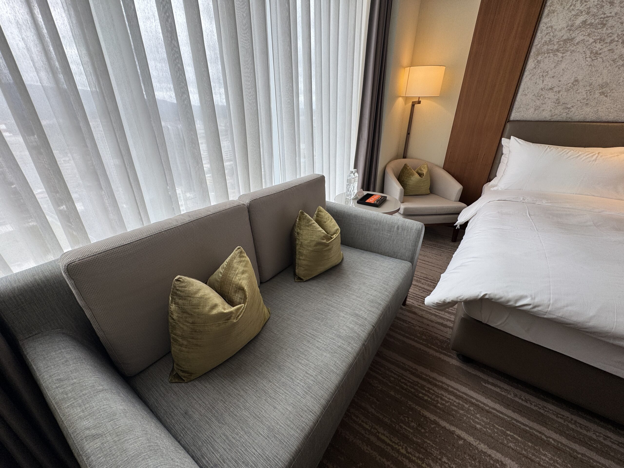 客室は、南港エリアの街並みを望める高層階の部屋も用意されており、落ち着いた雰囲気の中でゆったりと過ごすことができます。