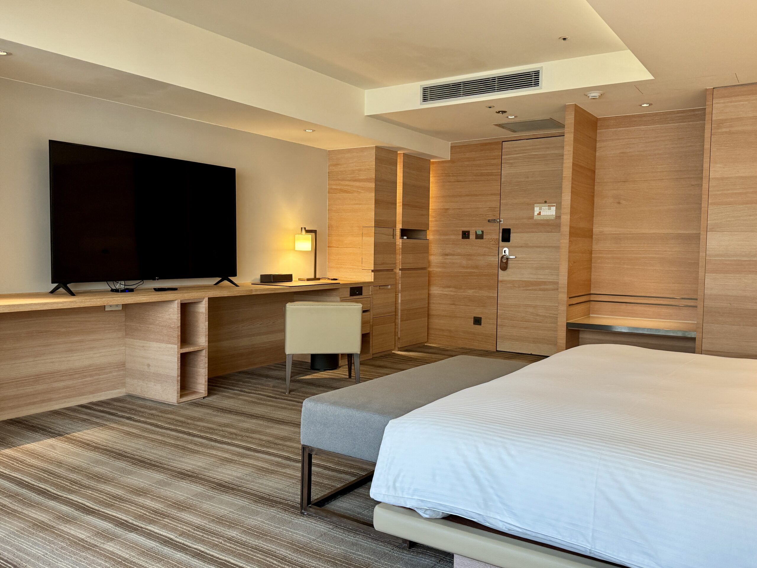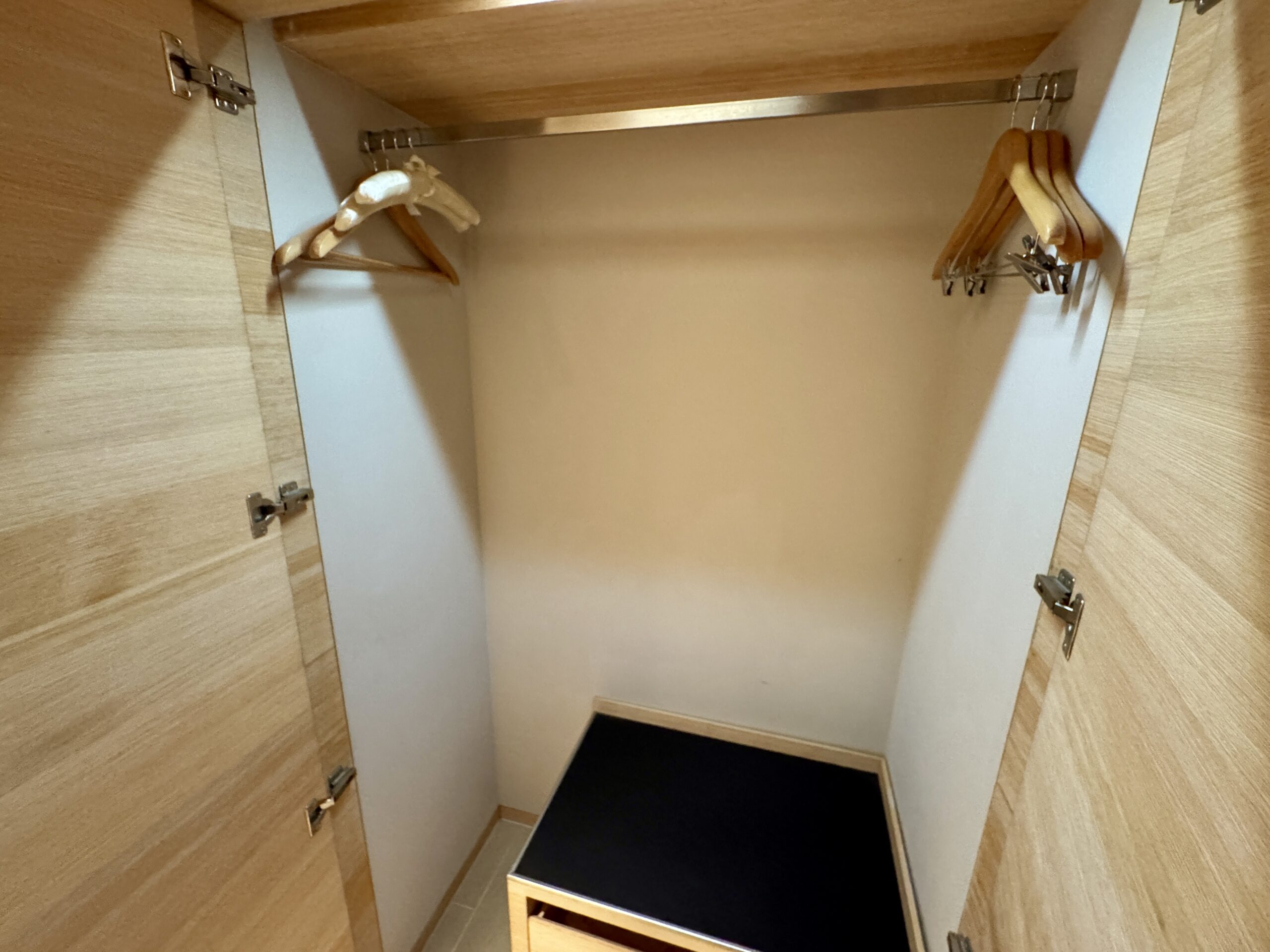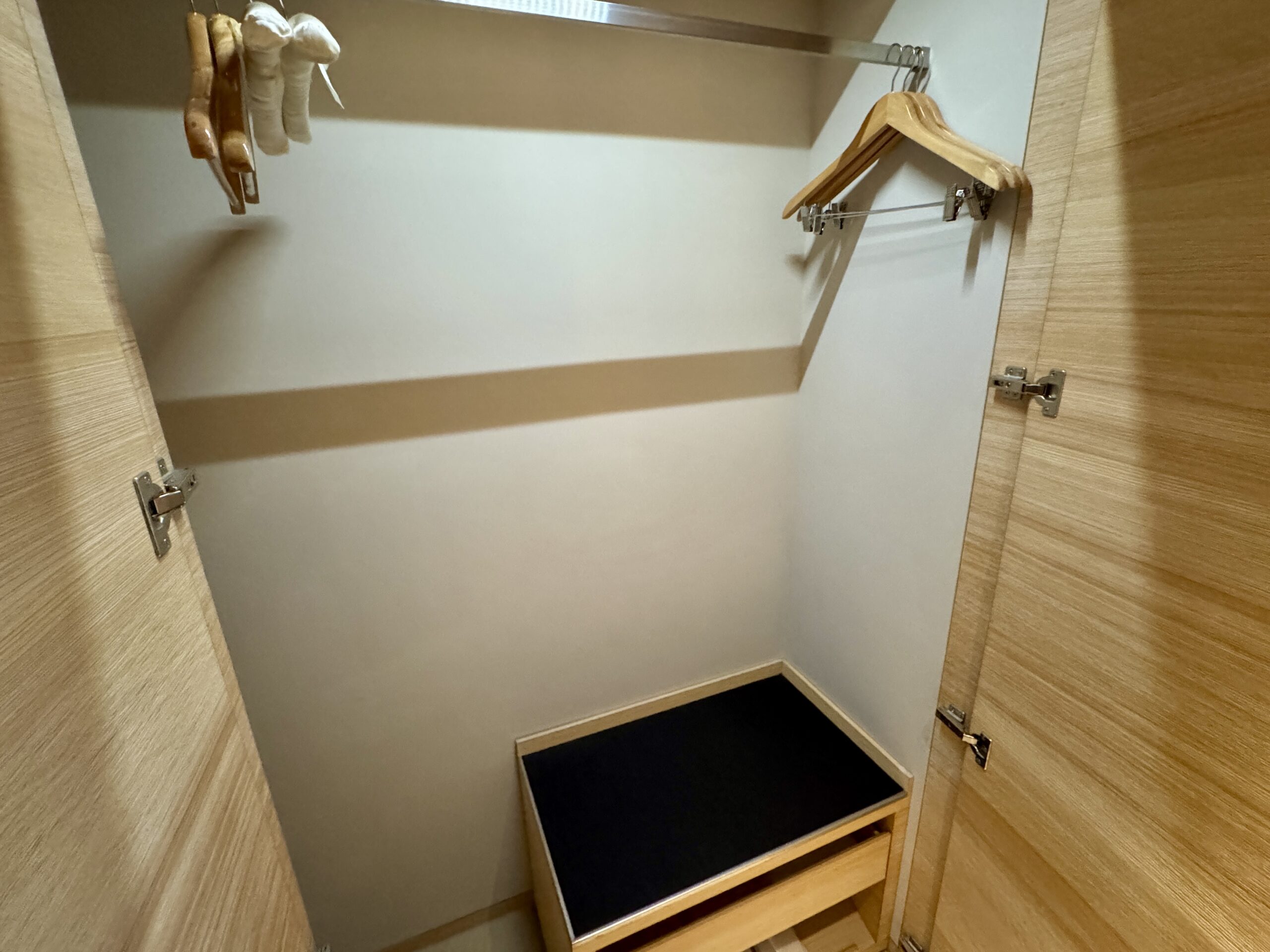 客室は、木目を基調とした落ち着いたデザインで、清潔感と機能性を兼ね備えています。派手さよりも「安心して休める空間」を重視した設計で、長めの滞在でもストレスを感じにくいのが特徴です。
