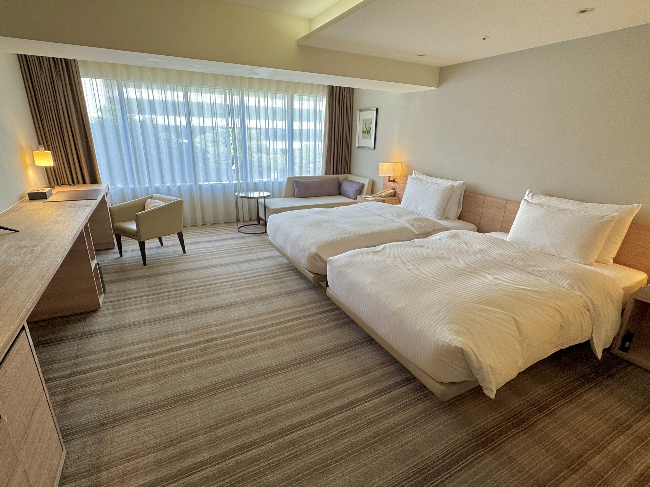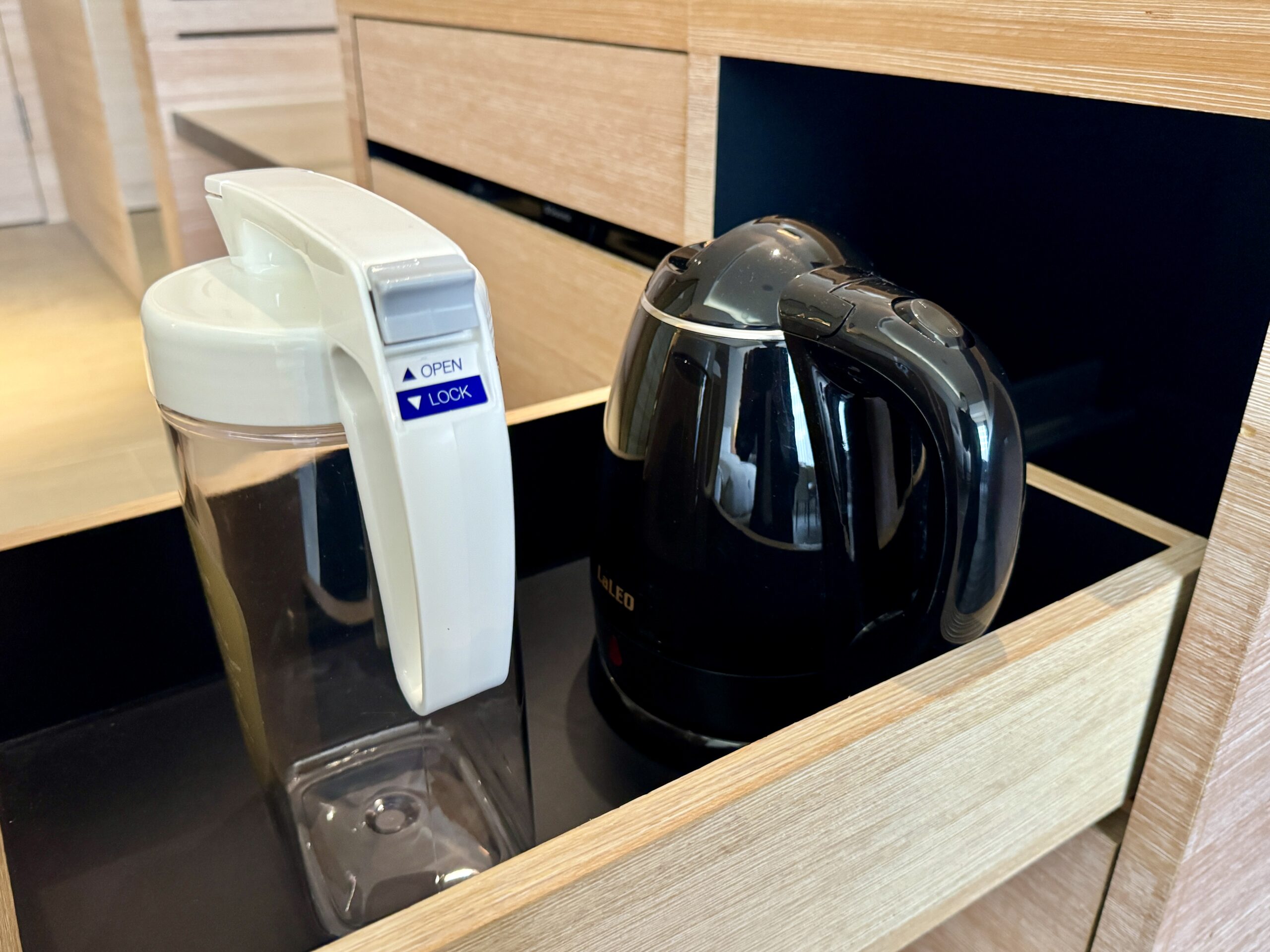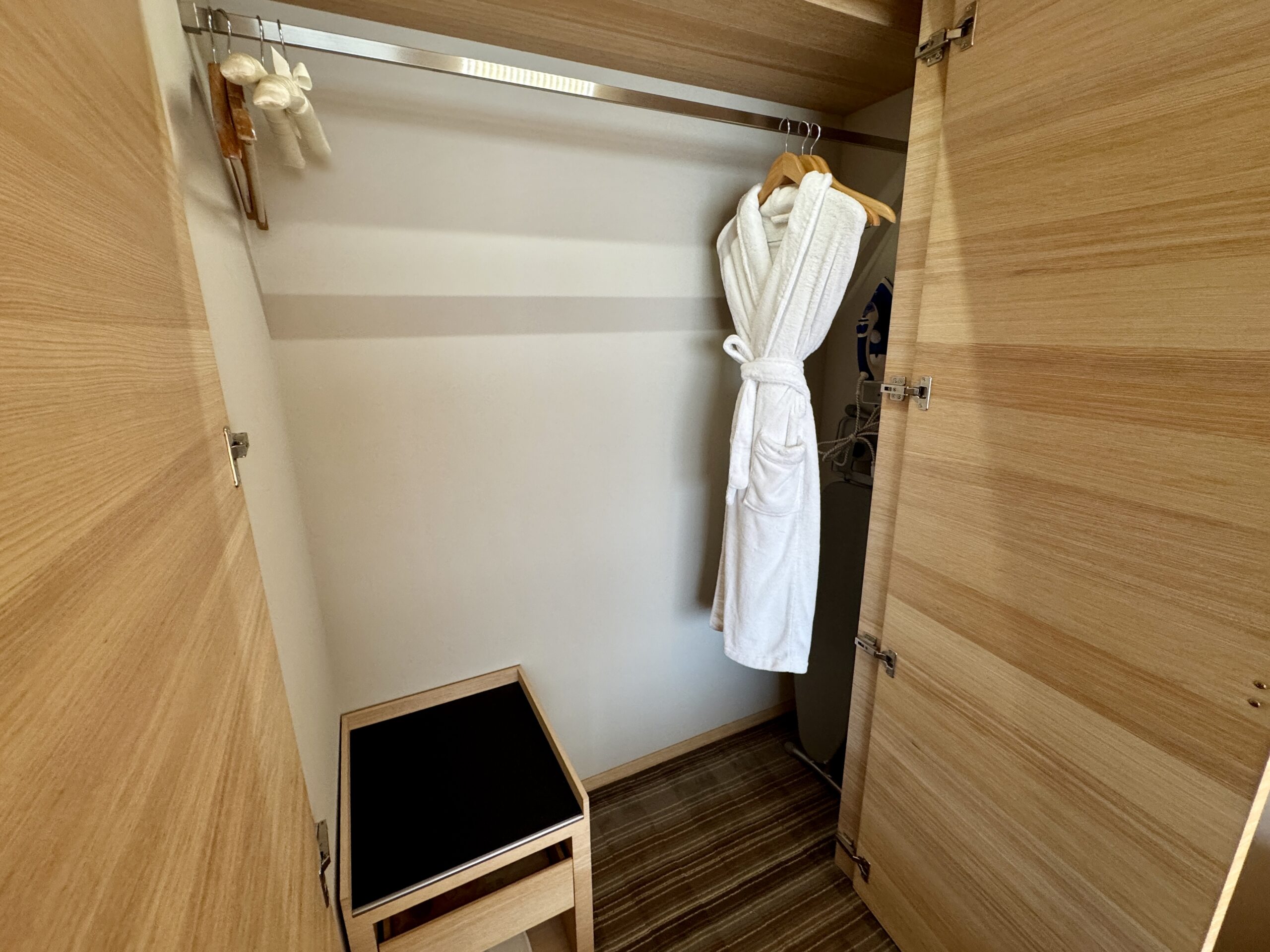 客室は、木目を基調とした落ち着いたデザインで、清潔感と機能性を兼ね備えています。派手さよりも「安心して休める空間」を重視した設計で、長めの滞在でもストレスを感じにくいのが特徴です。