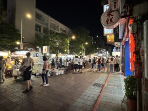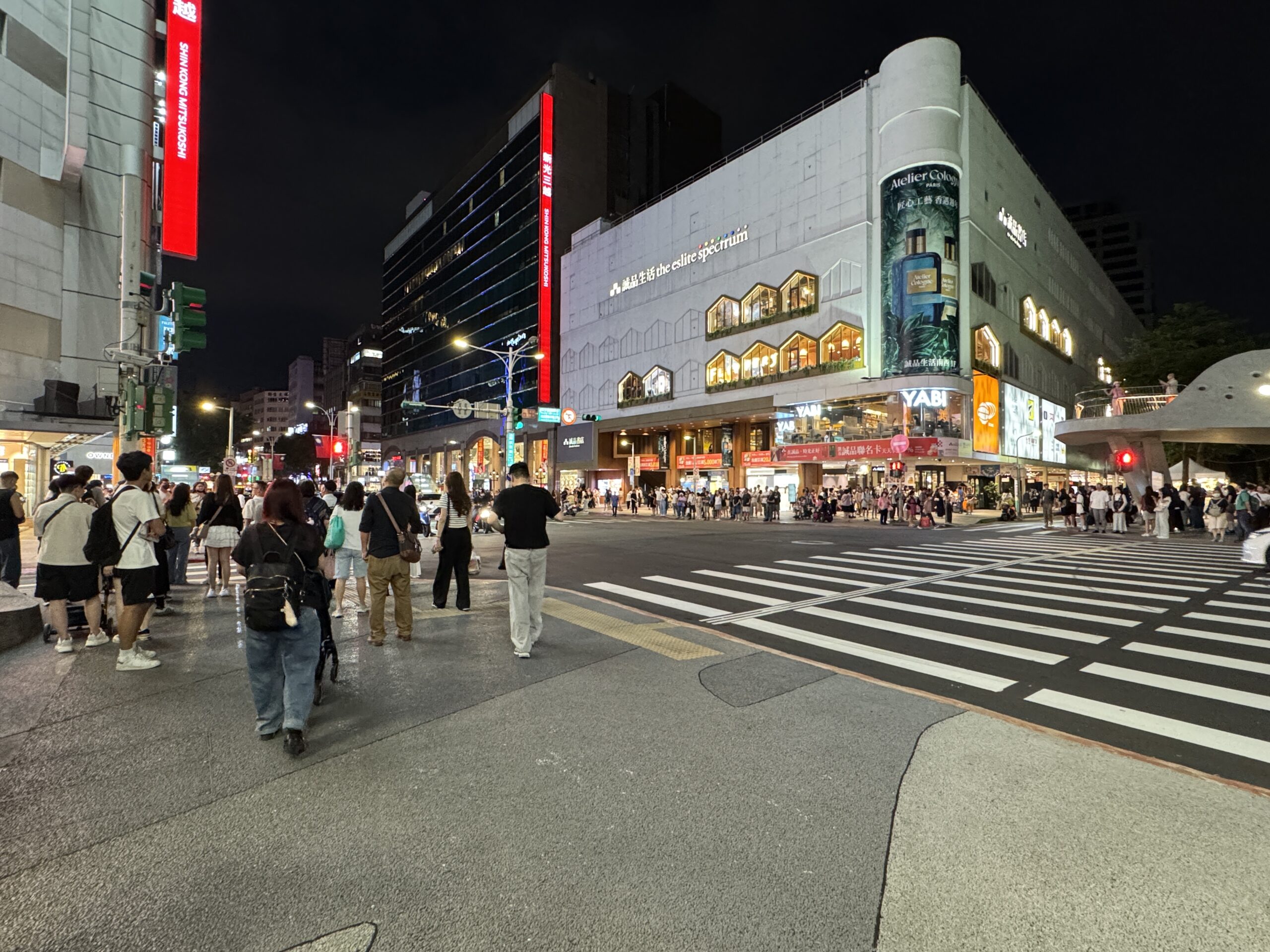 続いての写真は、同じ日に撮影した「台北MRT雙連駅周辺」の様子です。こちらも同様に、全体的に長袖や長ズボンを着用している人が多く、夜の時間帯はしっかりとした服装で過ごす人が増えている印象でした。